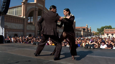 Argentina aterriza en la capital con 'Buenos Aires en Madrid', una iniciativa que incluye actividades como clases de tango, una exhibición de los campeones de milongas del mundo y música y baile en directo, que ha tenido lugar este sábado en Matadero Madrid. (Fuente: Ayto. de Madrid)