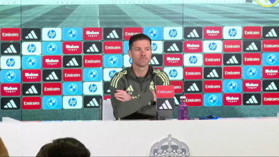 Imágenes de la rueda de prensa que ha dado este sábado el entrenador del Real Madrid, Xabi Alonso.