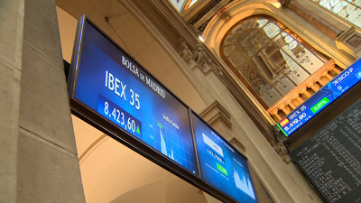 Imágenes de la Bolsa de Madrid, en la que el Ibex 35 subía un 0,3% y defendía la cota de los 8.400 puntos en la media sesión de este martes, con la banca liderando las subidas después de que el presidente de la Reserva Federal de Estados Unidos (Fed), Jerome Powell, haya abierto la puerta a una política monetaria "restrictiva" para frenar la inflación.