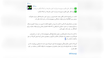 El primer ministro y ministro de Exteriores de Qatar, Mohamed Abdulrahmán al Thani, y el ministro de Exteriores en funciones de Irán, Ali Bagheri, han discutido este viernes "las últimas novedades sobre los crímenes del régimen sionista en Gaza y las formas de detenerlos", tras dos días de negociaciones en Doha (Qatar) sobre el alto el fuego en Gaza. (Fuente: Europa Press/DPA/Ministry Foreign Affairs Iran)