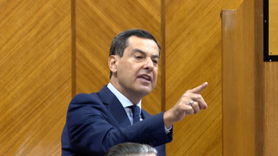 Imágenes del presidente de la Junta de Andalucía, Juanma Moreno, en los pasillos del Parlamento previo a su entrada en la Cámara andaluza para responder a las preguntas de los grupos en la sesión de control al gobierno, así como de la actividad parlamentaria en el interior de la Cámara.