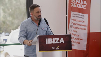 El presidente de Vox, Santiago Abascal, ha manifestado en Ibiza que derogarán todas las leyes aprobadas por el PSOE y construirán "todo lo que han destruido". "Nuestra pretensión es todo lo que han hecho los socialistas, tumbarlo", ha reiterado. (Fuente: Vox)
