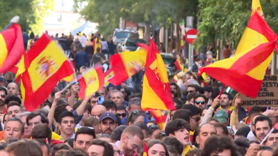 Más de 3.000 personas, según la Delegación del Gobierno, se concentran en la sede del PSOE, en la madrileña calle de Ferraz, en el marco de la décima jornada de protestas contra la amnistía y la investidura del presidente del Gobierno en funciones, Pedro Sánchez.