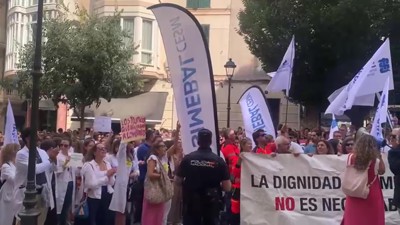 Centenares de médicos y facultativos se han concentrado este mediodía frente a la Delegación del Gobierno en Baleares, en Palma, para protestar contra el borrador del Estatuto Marco y reclamar la dimisión de la ministra de Sanidad, Mónica García. (Fuente: Vídeo)