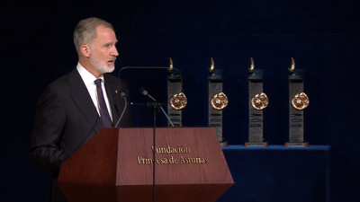 El Rey Felipe VI ha defendido este viernes la necesidad de "educar en valores" para garantizar la "convivencia democrática" y dar a las nuevas generaciones las herramientas con las que construir su futuro en un mundo que se debate entre "dos extremos inquietantes", el individualismo y la globalización. (Fuente: Pool TVE)