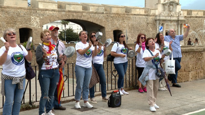 Imágenes de la cacerolada organizada por la asociación 'Nuestro Corazón por Bandera', que representa a las mujeres de Guardias Civiles, frente a la subdelegación del Gobierno en Cádiz para denunciar la "insostenible situación" debido al narcotráfico que sufren los agentes de la provincia de Cádiz y Campo de Gibraltar.